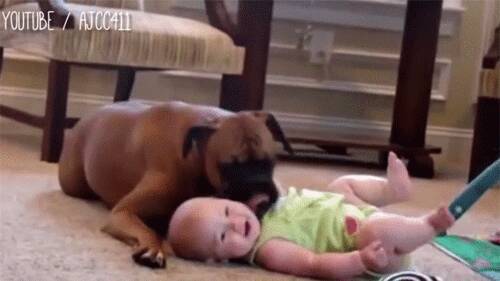 両方かわいい どっちが飼い主かわからない犬と赤ちゃん 動画 らばq